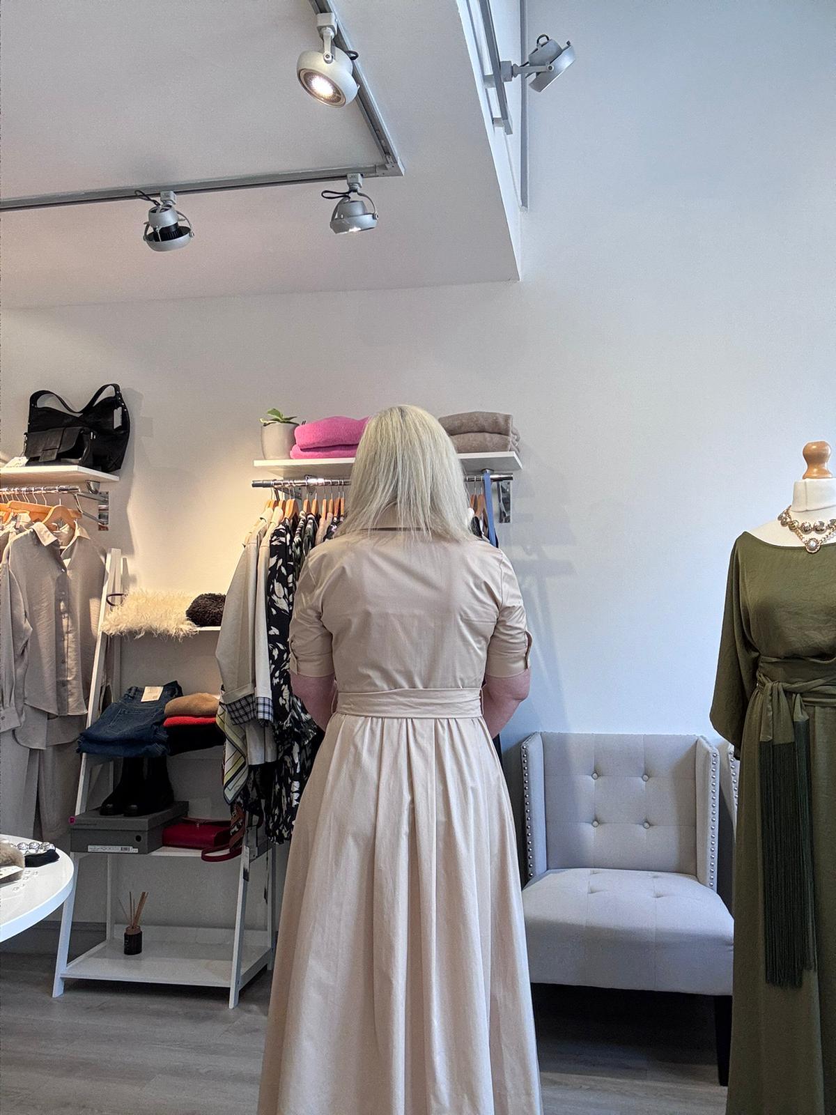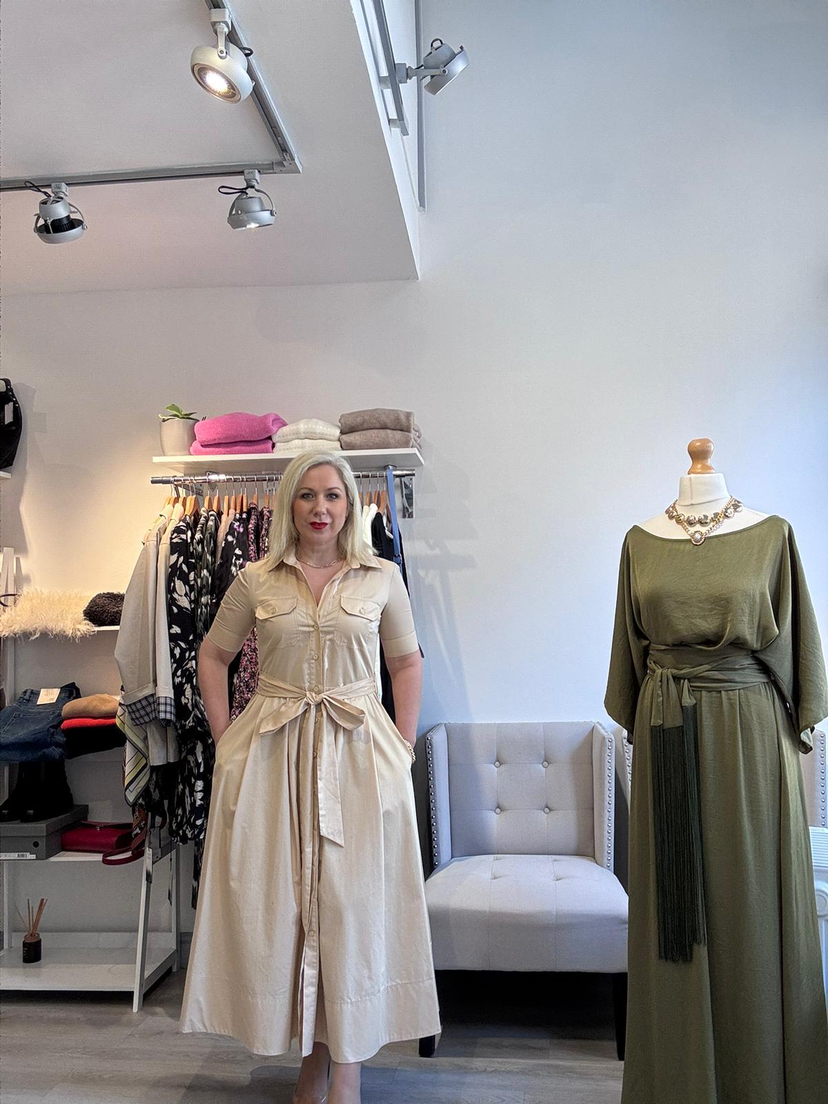 Elevate your summer wardrobe with our light beige 100% cotton shirt dress, designed for effortless elegance and all-day comfort. Crafted from breathable natural cotton, this midi-length dress is the perfect choice for garden parties, summer weddings, special lunches and warm-weather occasions.