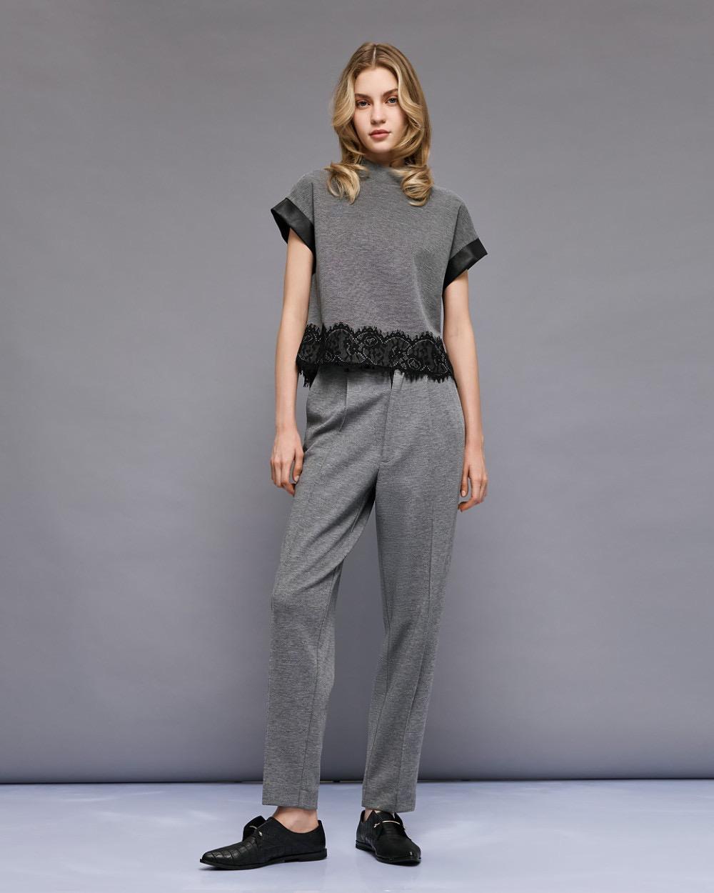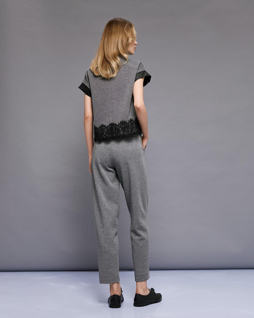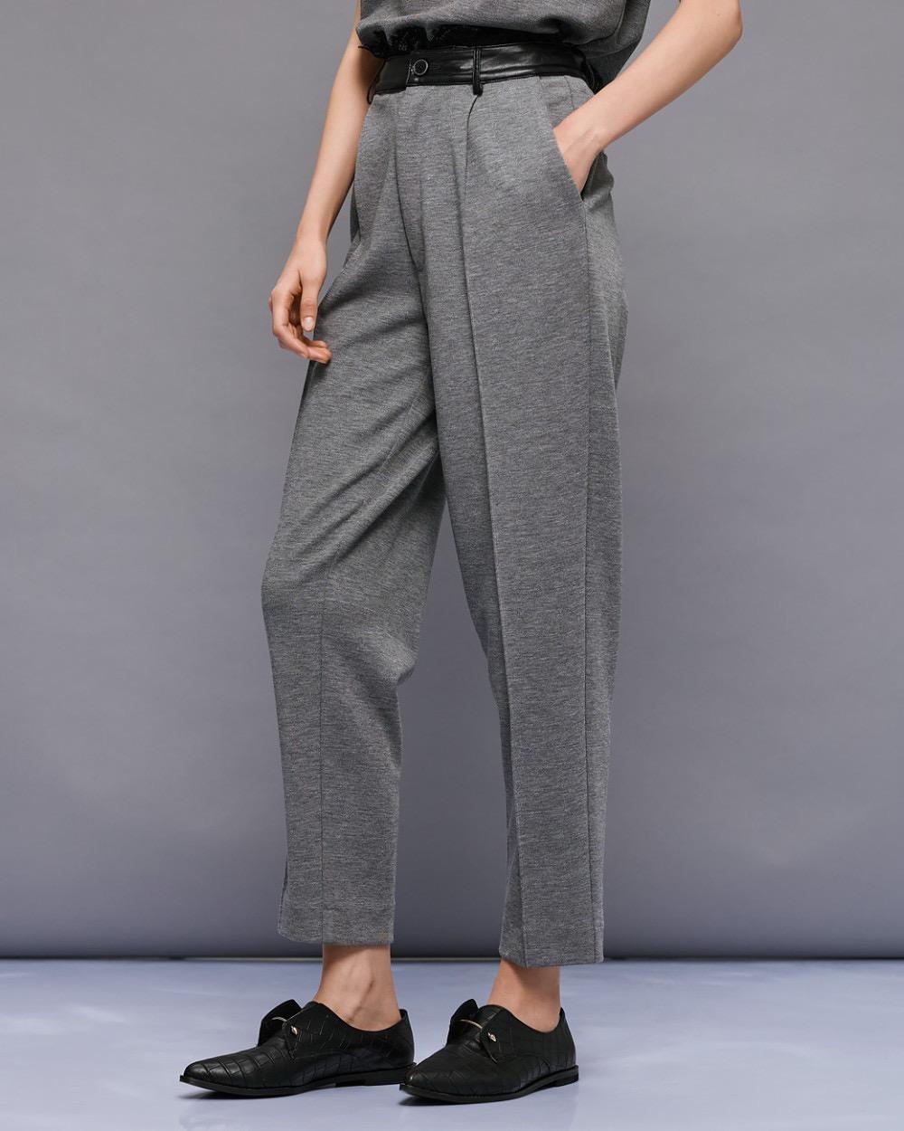 Pants with a faux leather waistband and decorative seams. Featuring side pockets, decorative welt pockets at the back and belt loops. Pair them with the matching blouse from our collection for stylish all-day looks.