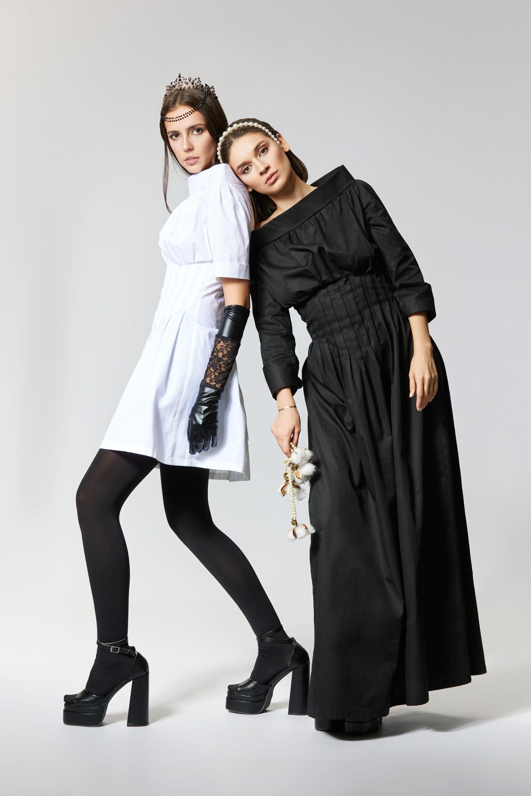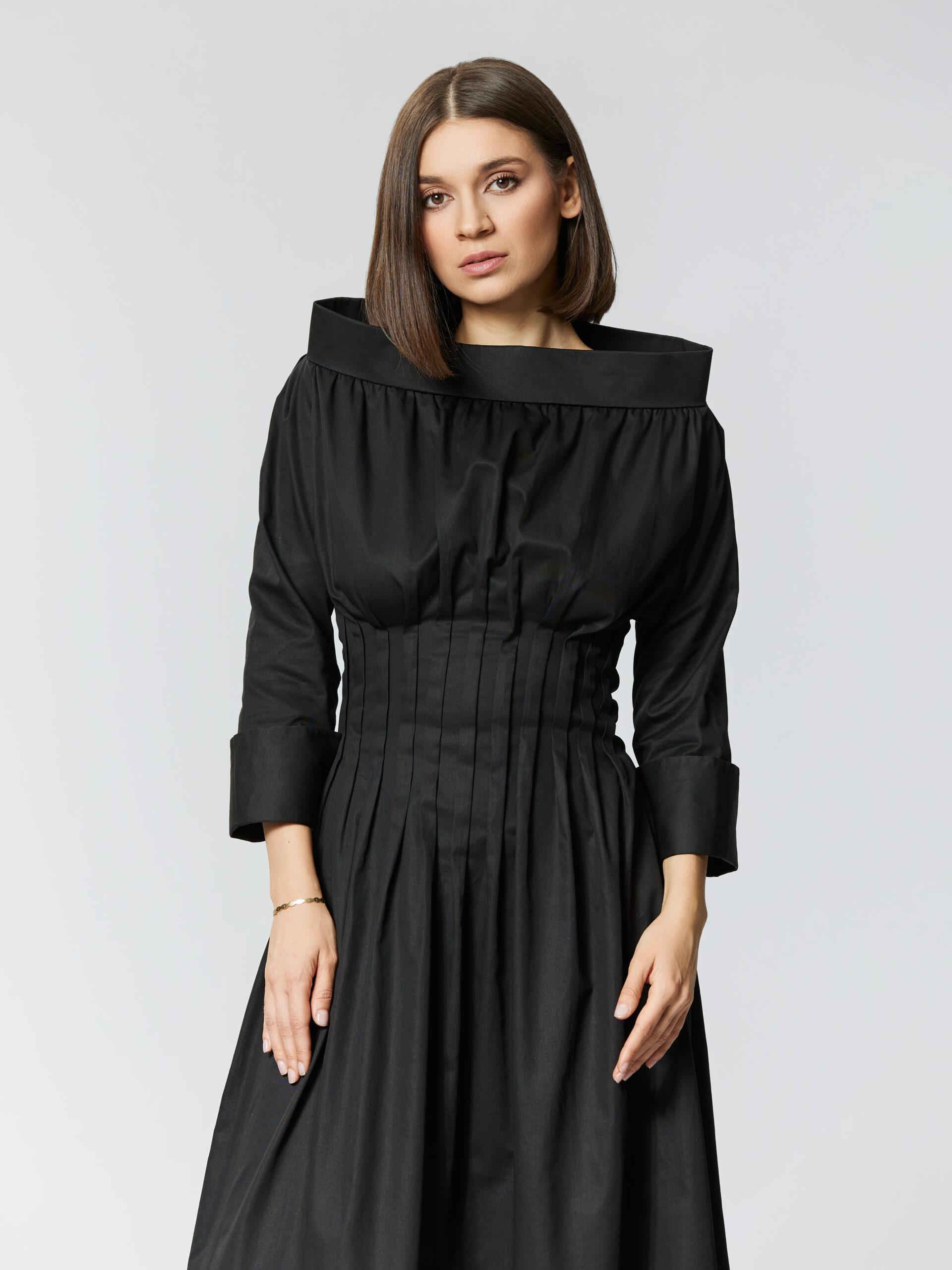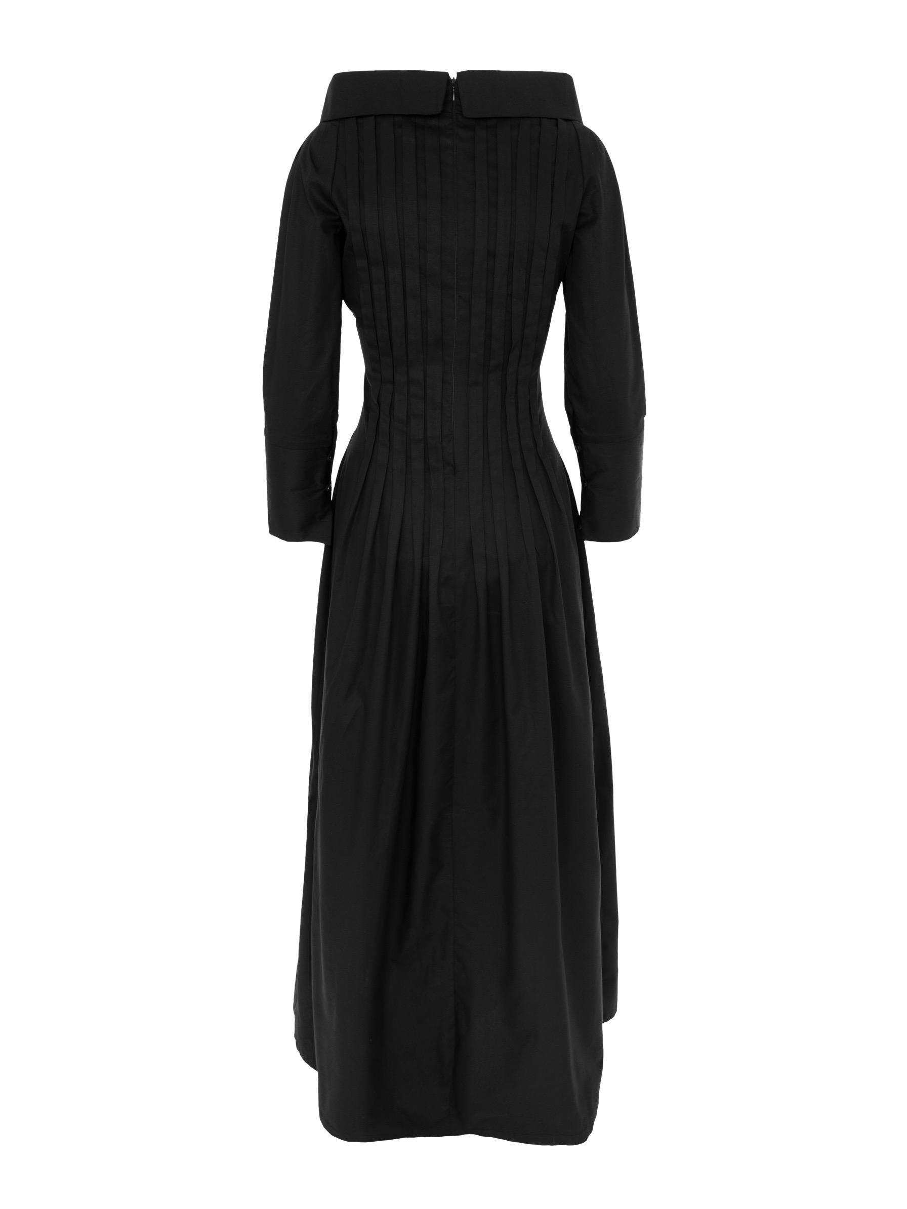 The SEYA dress offers an exclusive blend of contemporary chic and timeless elegance. Crafted from GOTS certified organic cotton, this superior quality long dress features a statement round collar, a corset illusion, and is versatile enough to pair with sneakers or stilettos.
