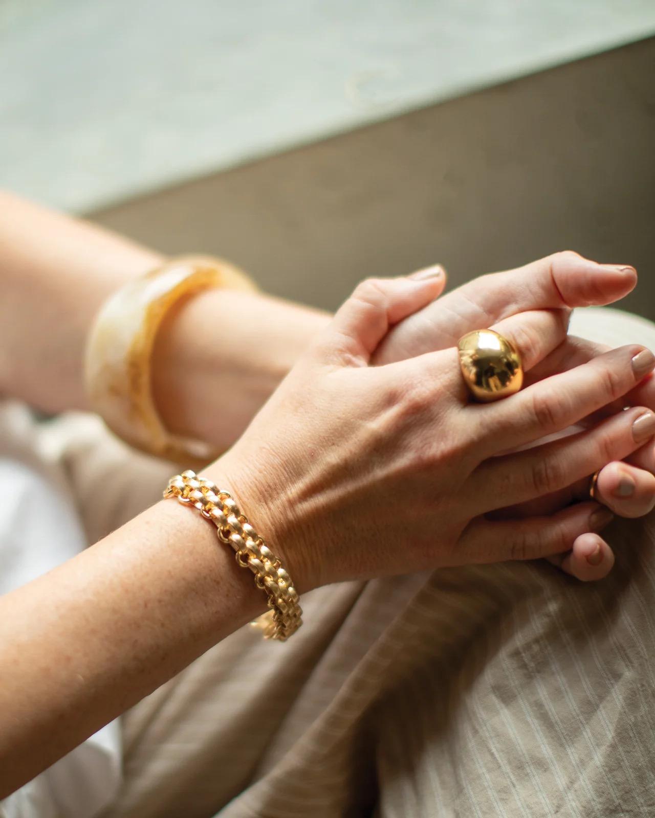 The mesh chain bracelet is a classic chain bracelet with a modern twist. Wear alone or stack with our daintier pieces.