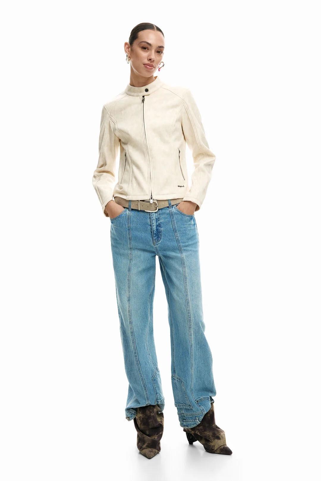 The Desigual Mao collar jacket in white is a contemporary faux leather jacket designed to bring clean structure and effortless style to everyday dressing. With its softly worn finish and tailored silhouette, this Desigual jacket offers a modern look that feels both refined and versatile.