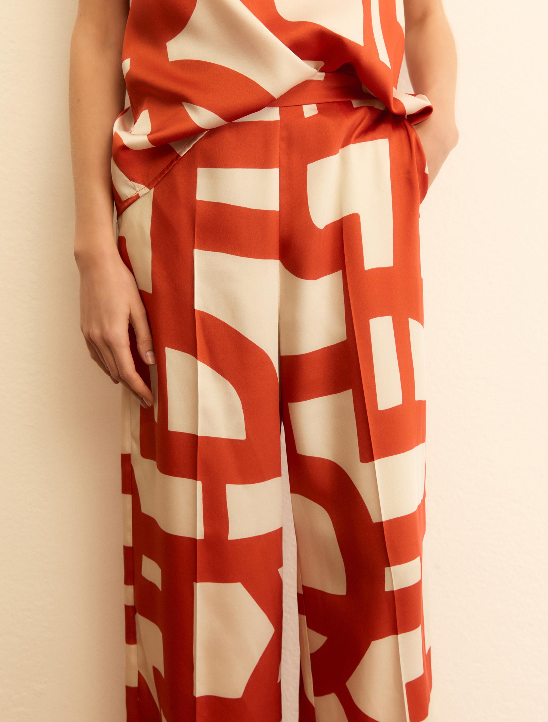 Crafted from printed twill fabric, the trousers feel smooth and lightweight while maintaining a soft, flowing drape. The main fabric contains at least 50% recycled polyester, offering a more conscious choice without compromising on quality or style.