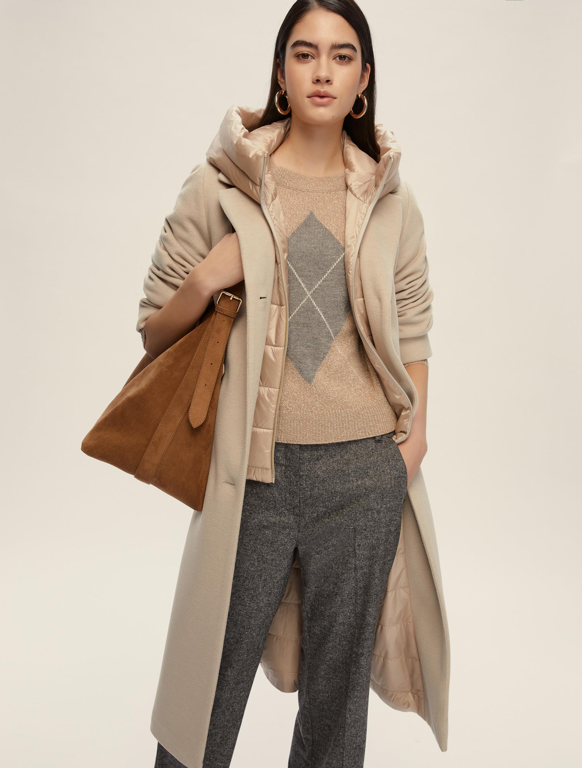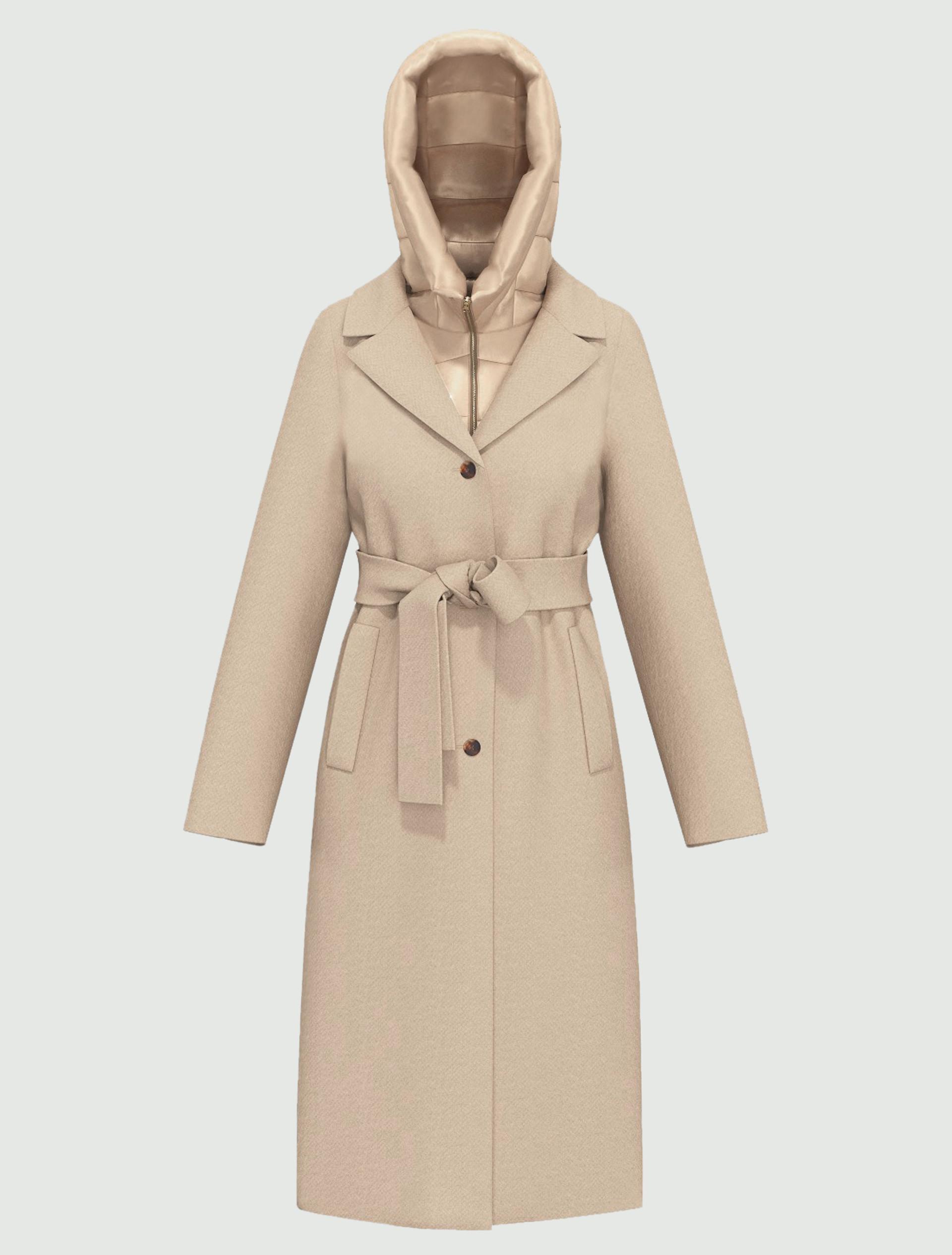 - Removable hooded collar and inner gilet in water-repellent luxury fabric