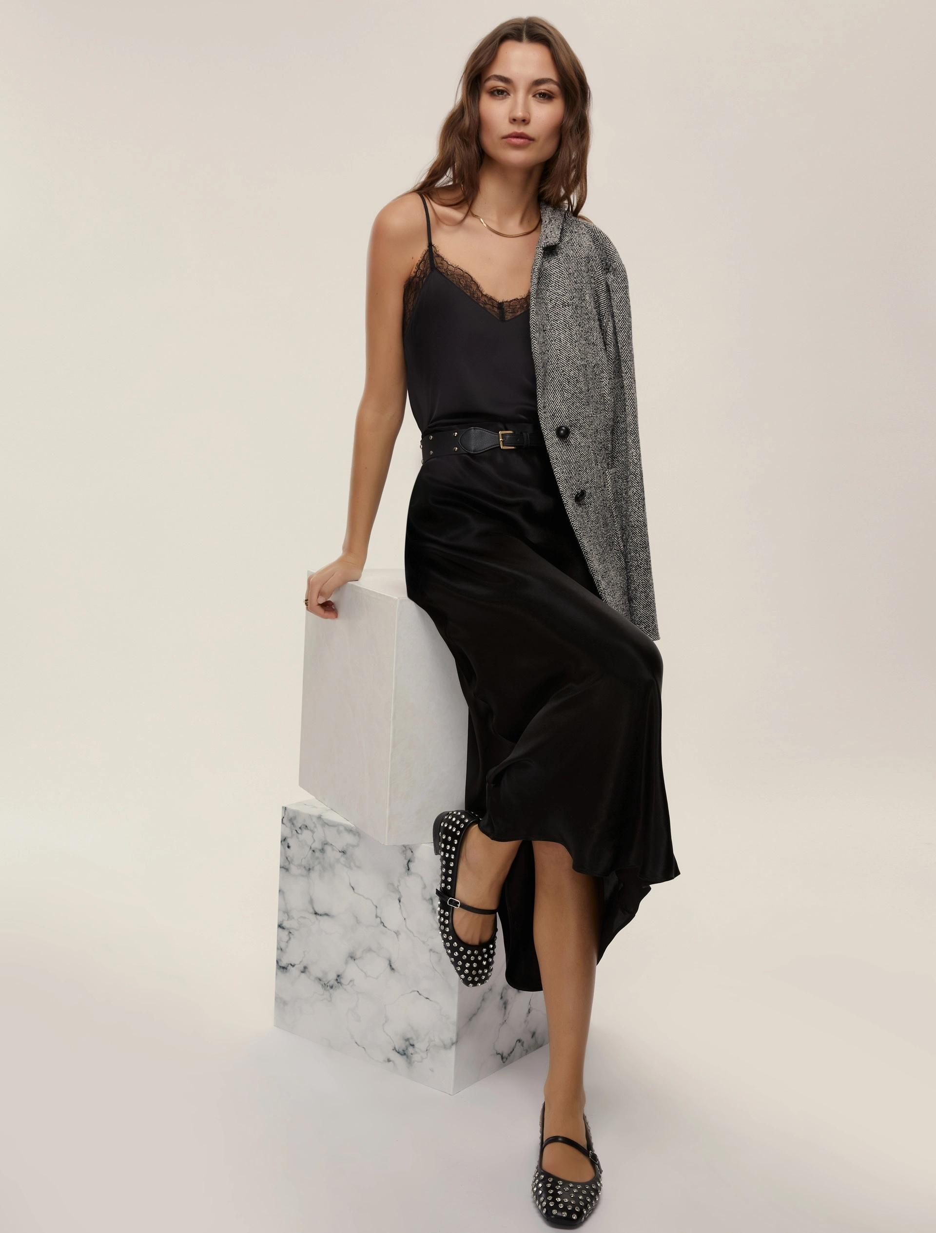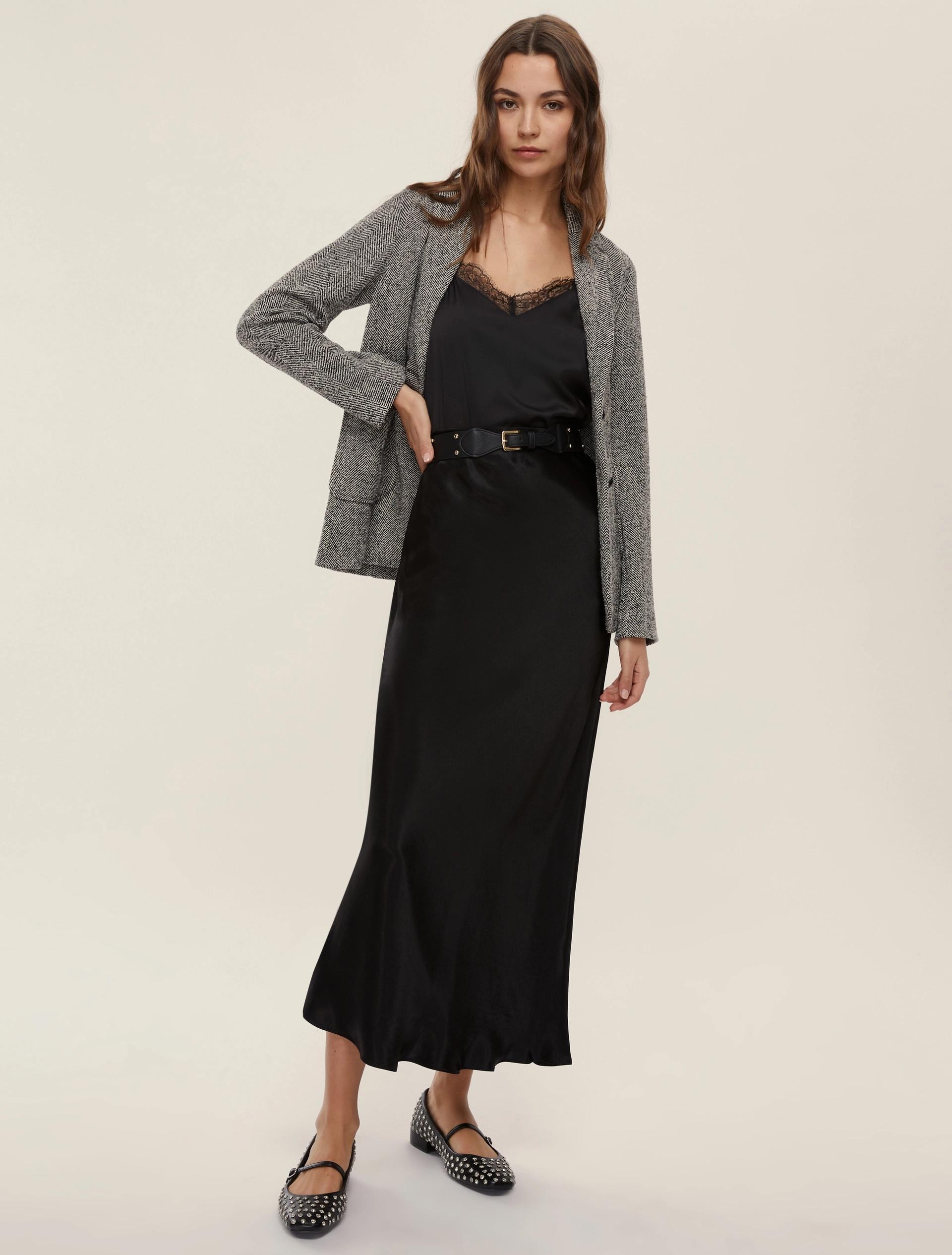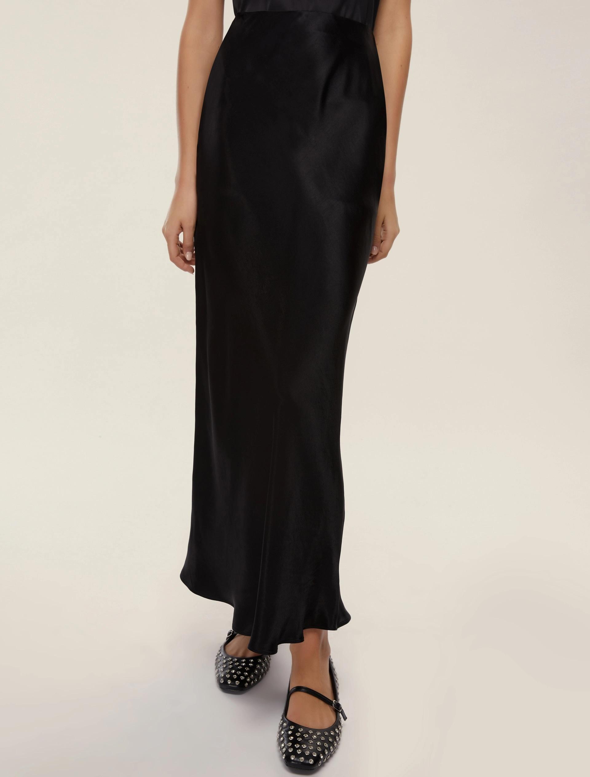 A crinkled satin version of the much-loved calf-length skirt: essential, ever-elegant and perfect for the day and night. Experiment with the look for surprising results every time.