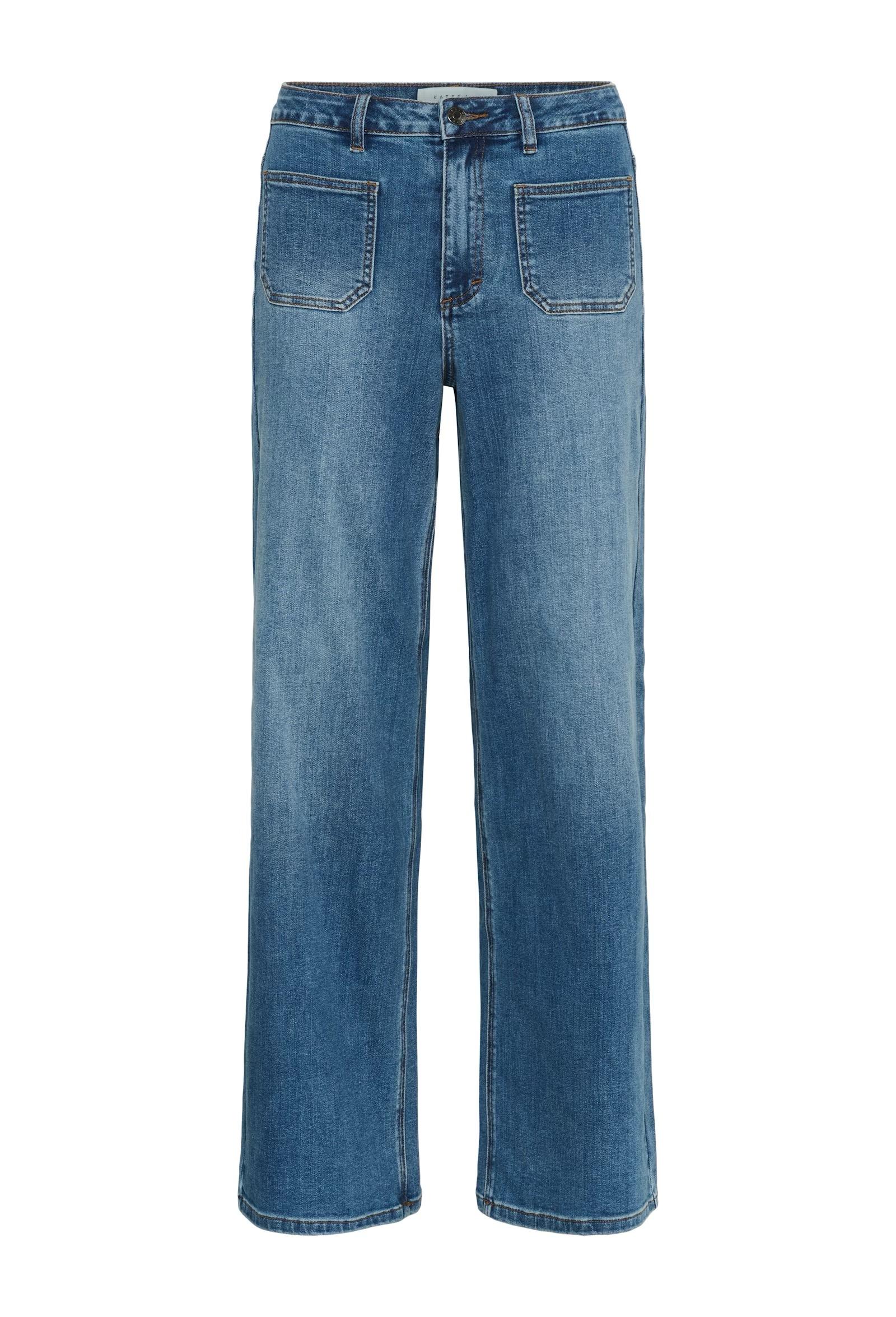 These women’s wide-leg jeans feature a modern high waist fit, front patch pockets, and full length. Designed for comfort and effortless style, they offer versatile wear for various occasions and easy outfit pairing.