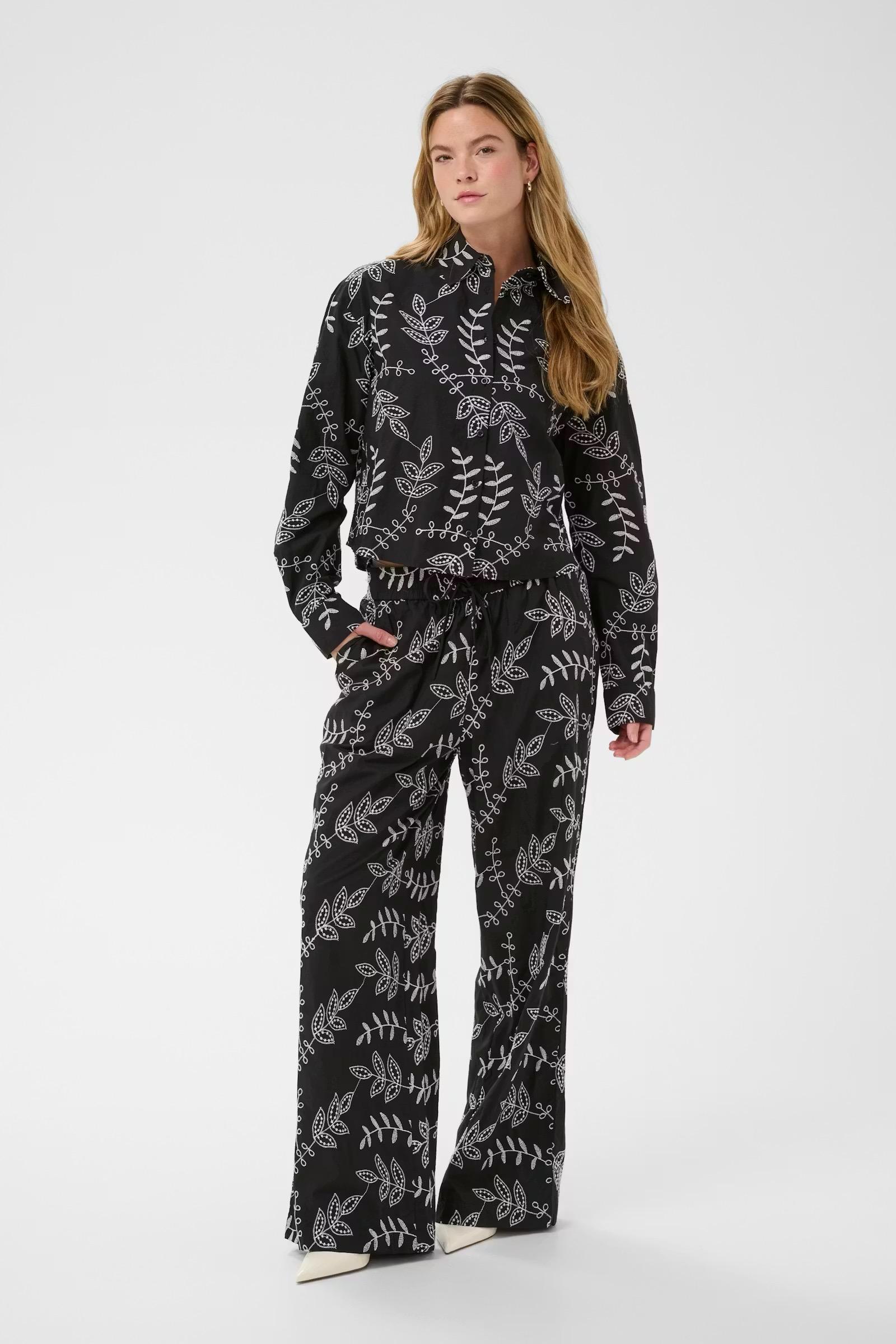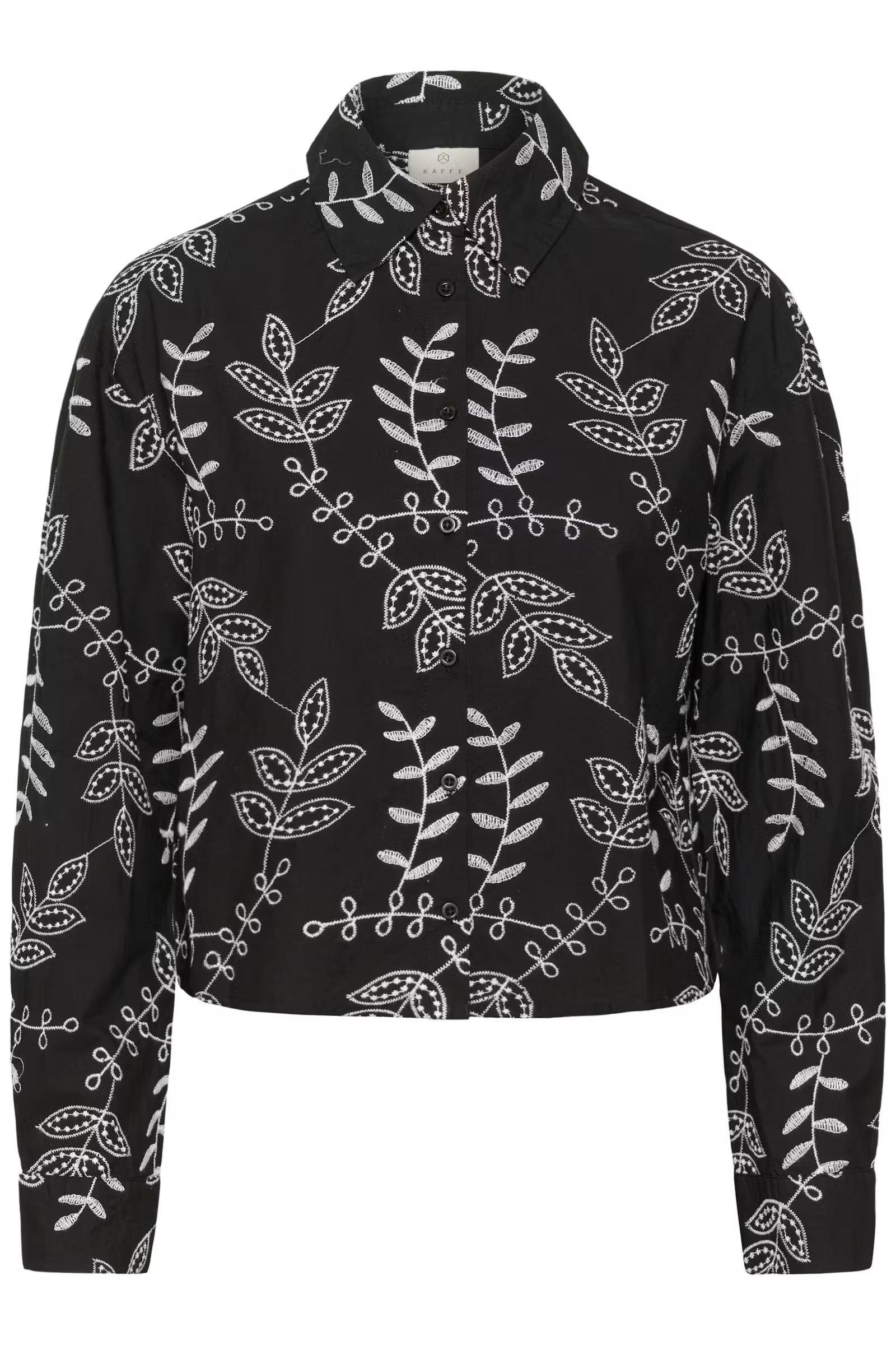 Button-down shirt with structured collar and all-over leaf embroidery. Features a straight fit, full-length sleeves, and classic hem for timeless appeal.