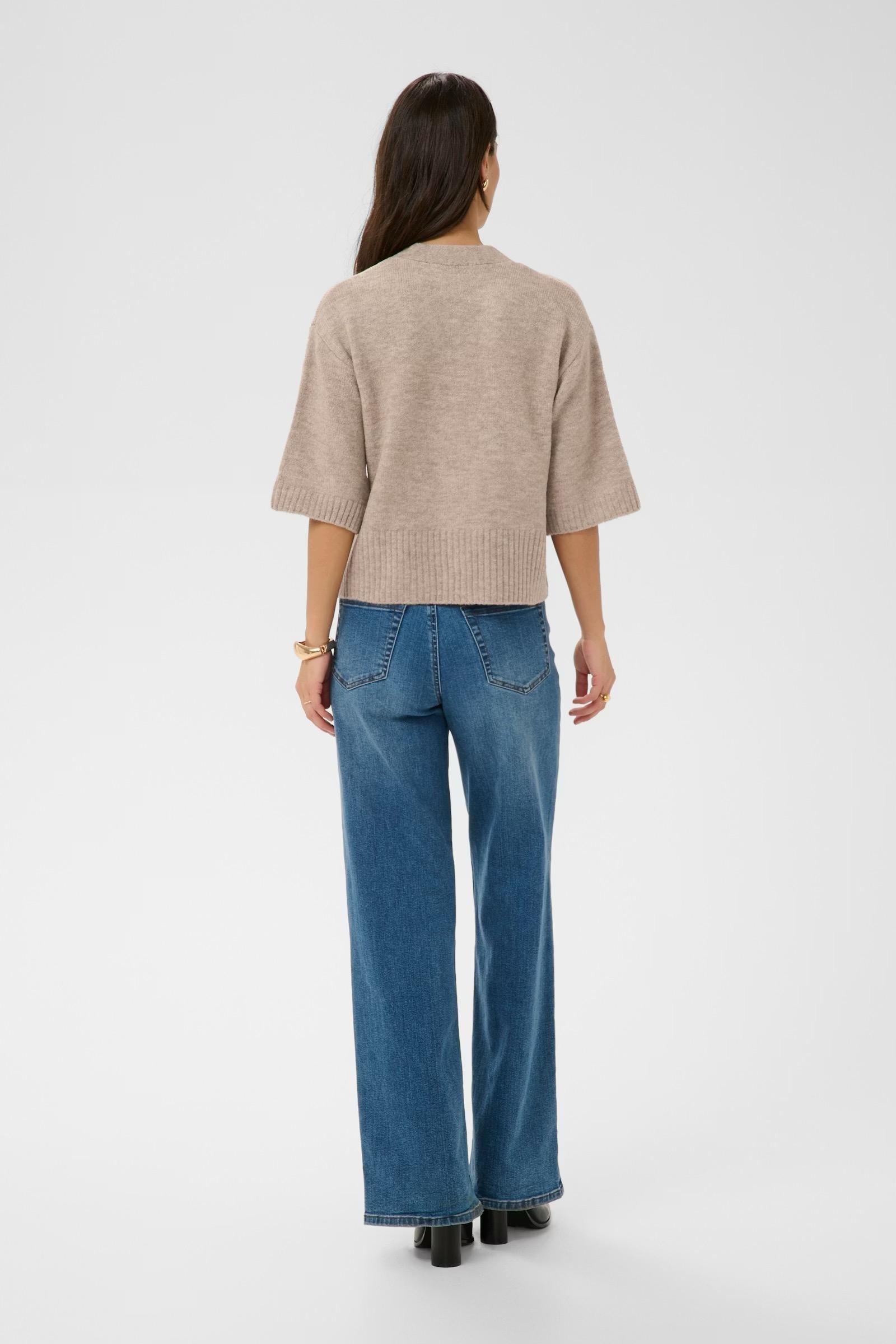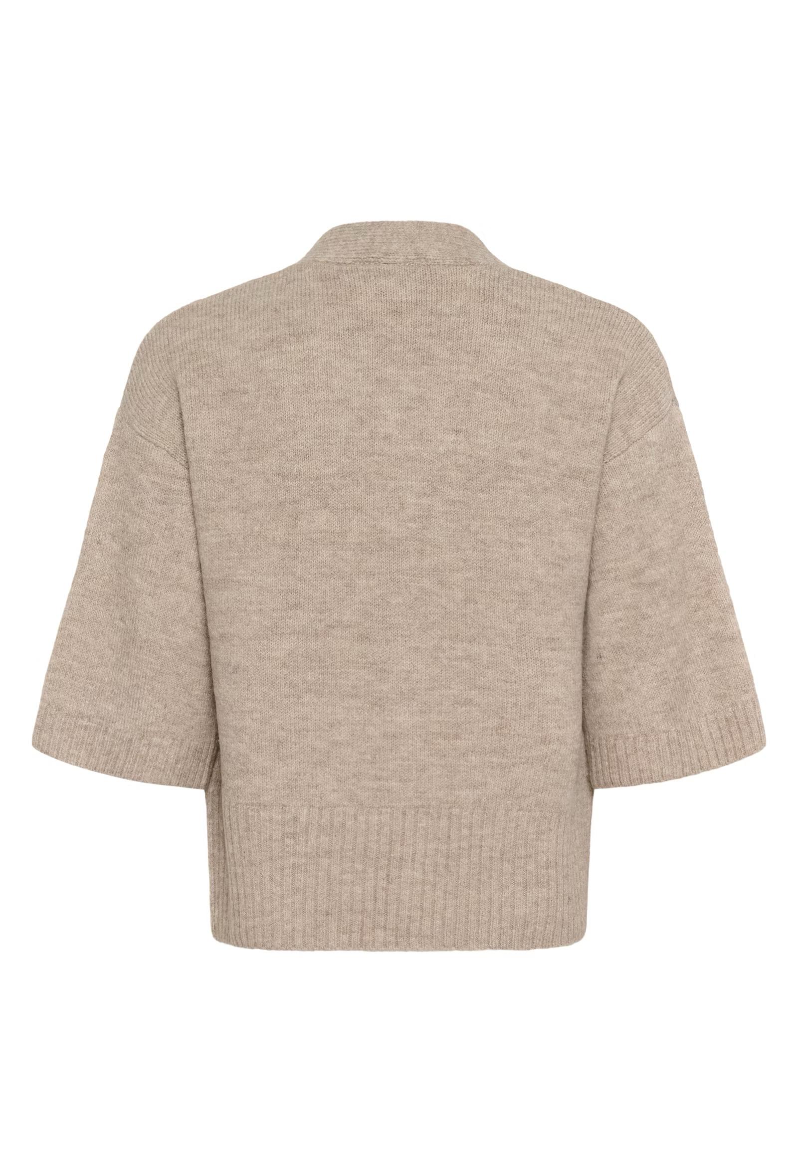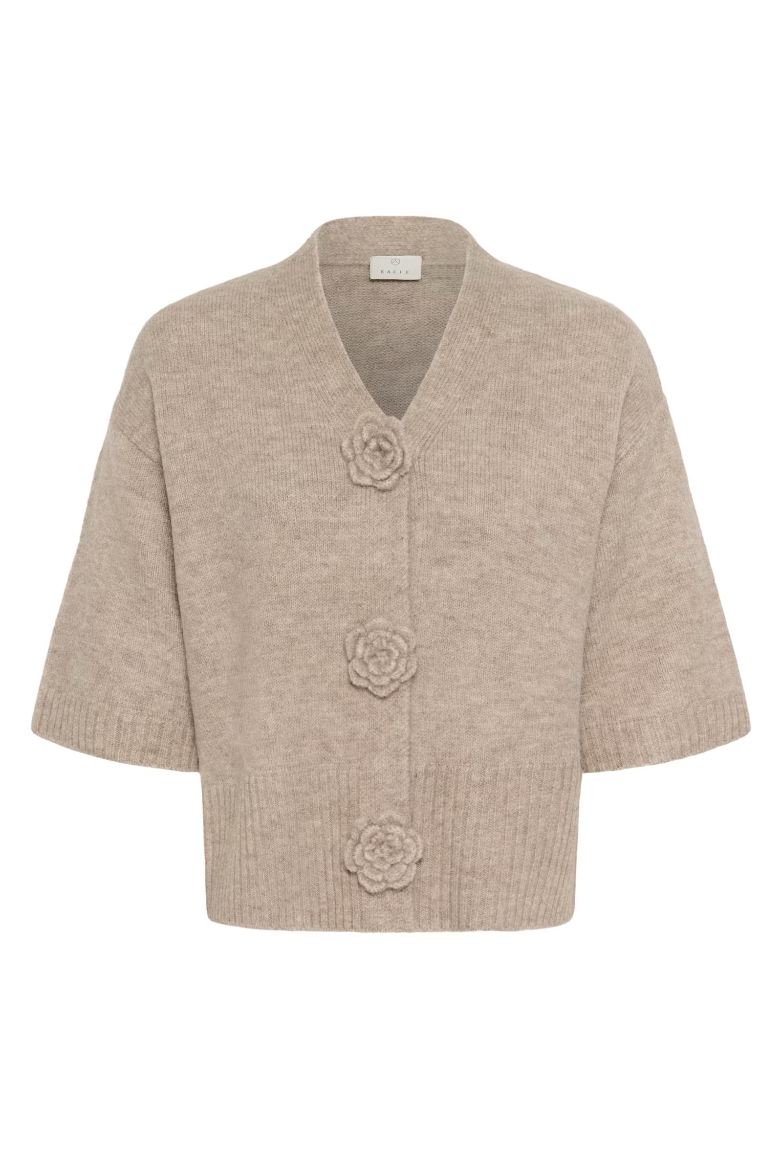 Cardigan with a boxy, straight fit and cropped length, featuring a soft textured finish. Distinctive flower-shaped front buttons and mid-length sleeves elevate the minimal design.