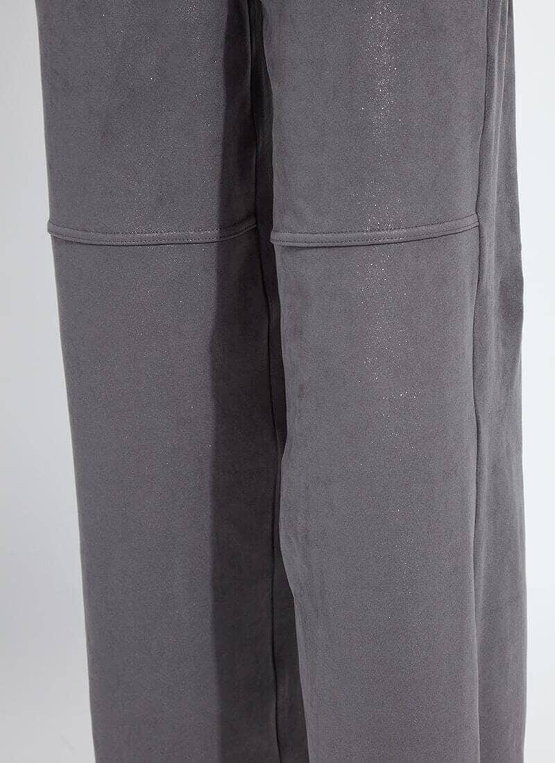 The Amina Patent Foil Vegan Suede Pant offers a concealed patented waistband, front functional pockets with high-shine silver studs, back patch pockets, a back yoke and a raw-edge hem that’s easy to shorten. Made with Patent Foil Vegan Suede for a liquid foil effect, these cropped, wide-leg pants feature horizontal knee seams that replicate genuine suede. We love these festive Vegan Suede pants styled with our chic Hadley Cozy Short Sleeve Embellished Cable Sweater and boots. Turn inside out to machine wash and air dry.