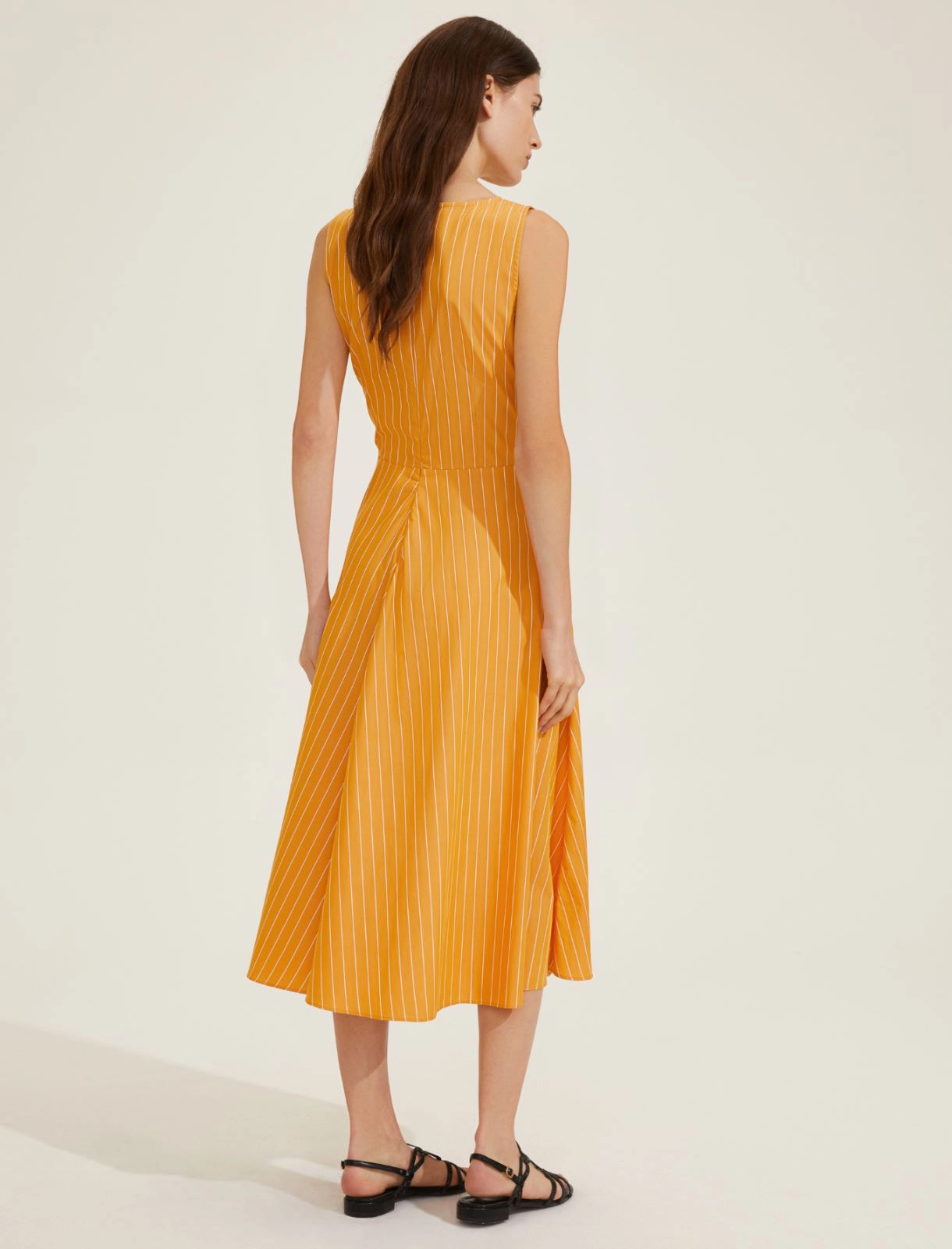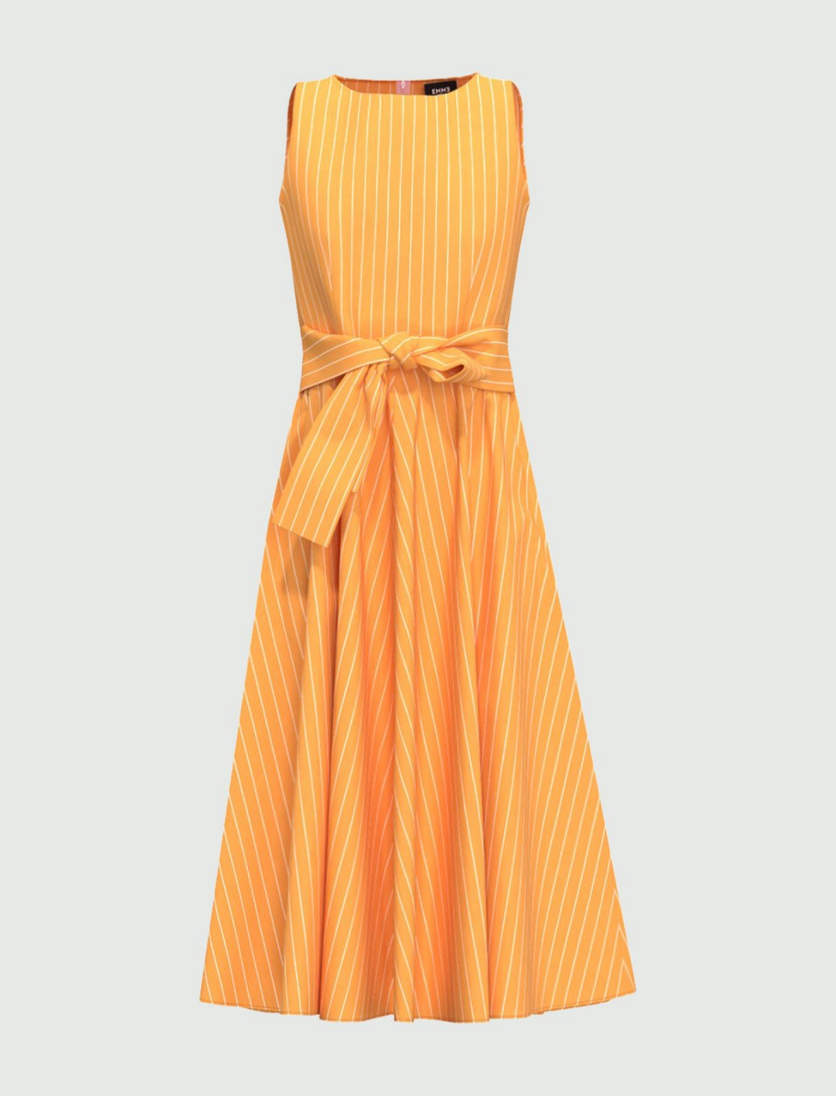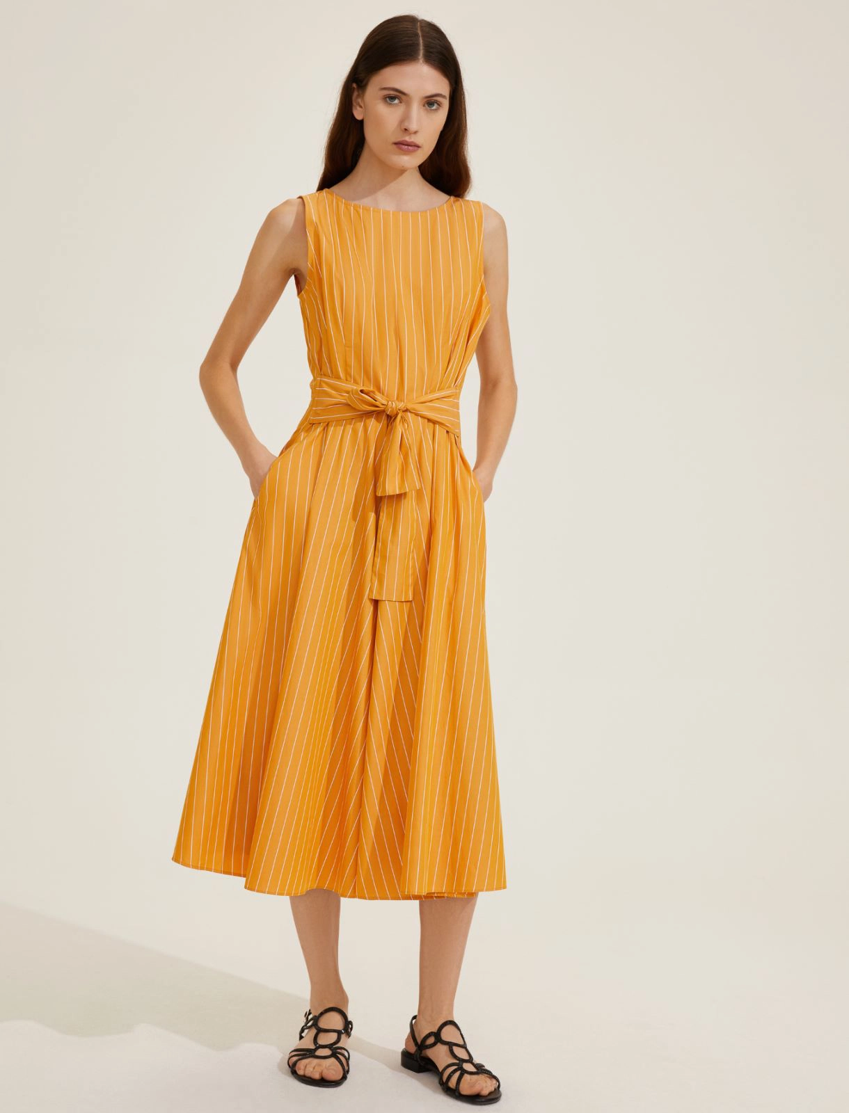 A cool take on the belted dress, offered in spring-reminiscent hues with a distinctive fixed waist sash design. Pair the sleeveless calf-length model with sandals or slingbacks for an easy & chic style.