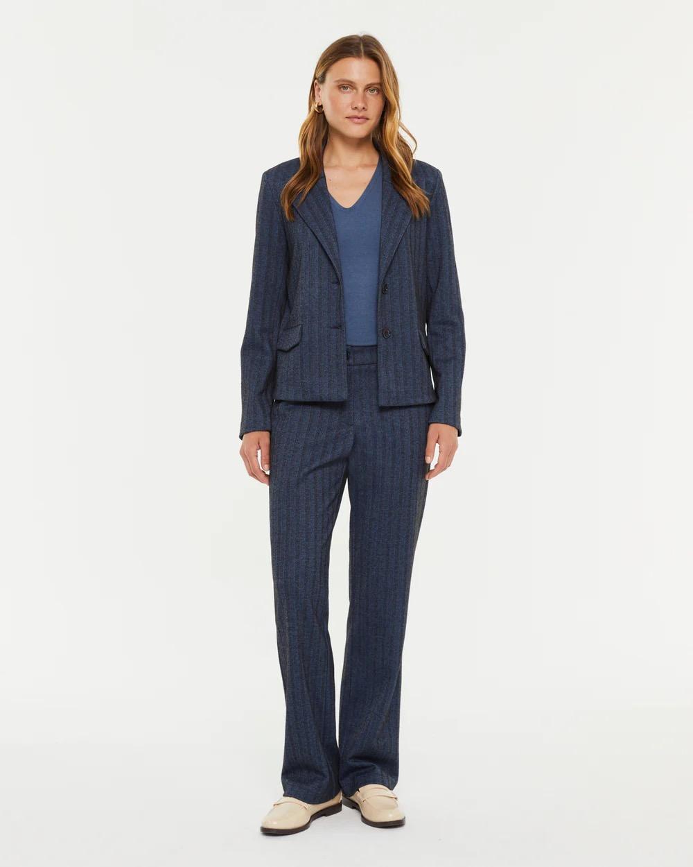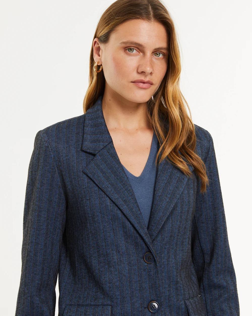 Unlined knit blazer with a herringbone pattern. Lapel collar and flap pockets. Two-button front closure. Pair it with matching trousers for a perfect look. Regular fit.