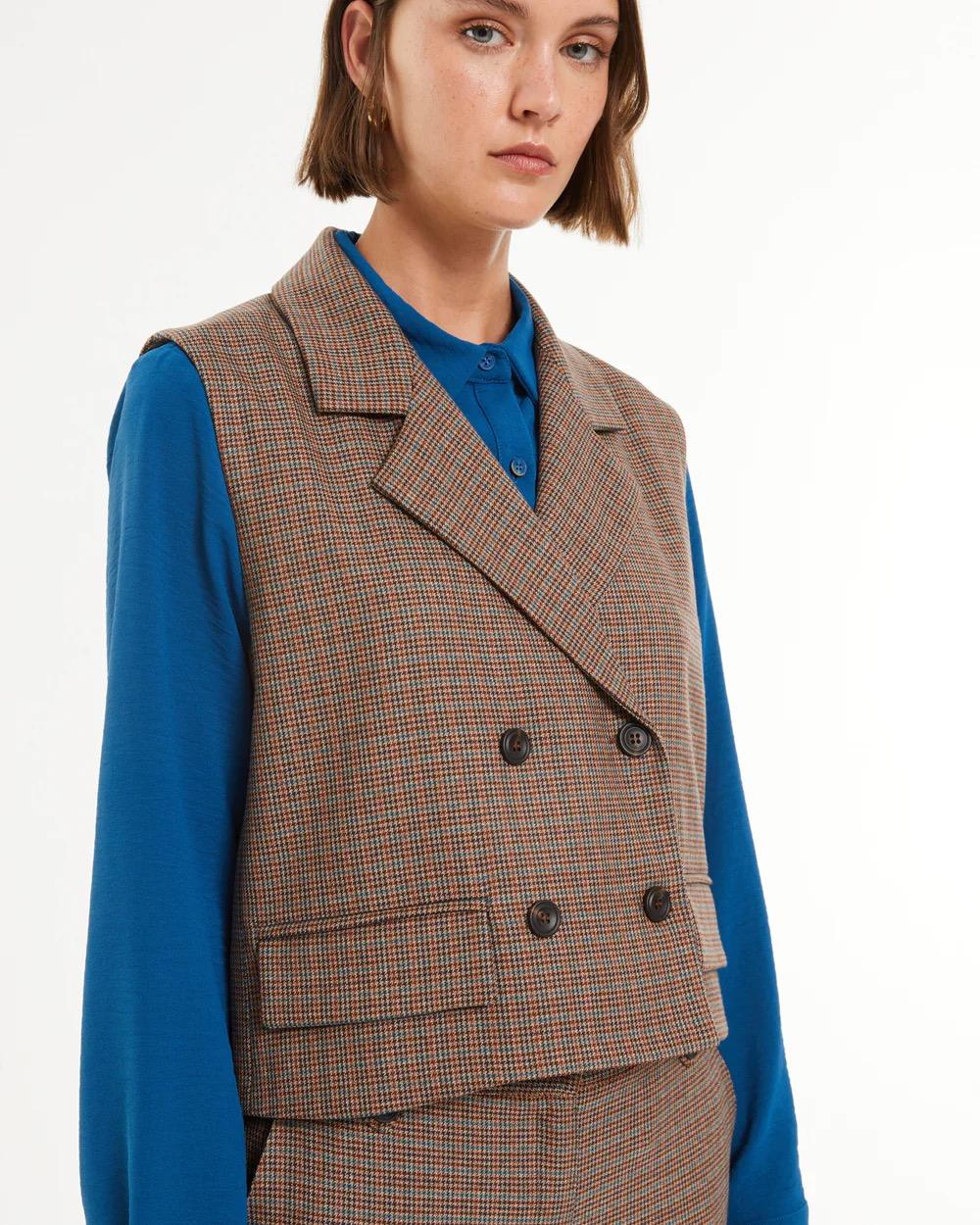 Lined checked vest with double breasted cuffs and flap pockets. Pair it with matching trousers for a perfect look. Regular fit.