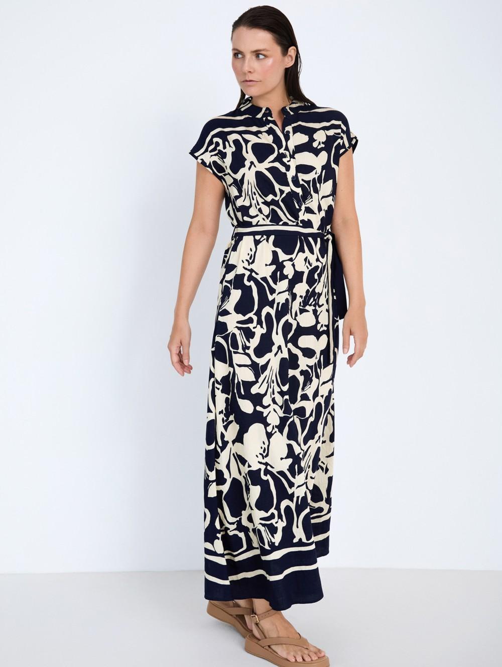 Crafted from a soft viscose blend, the fabric feels light and breathable against the skin while offering a gentle drape that allows the dress to move naturally with every step. The fluid material enhances the relaxed shape while maintaining a polished finish suitable for both daytime and evening wear.