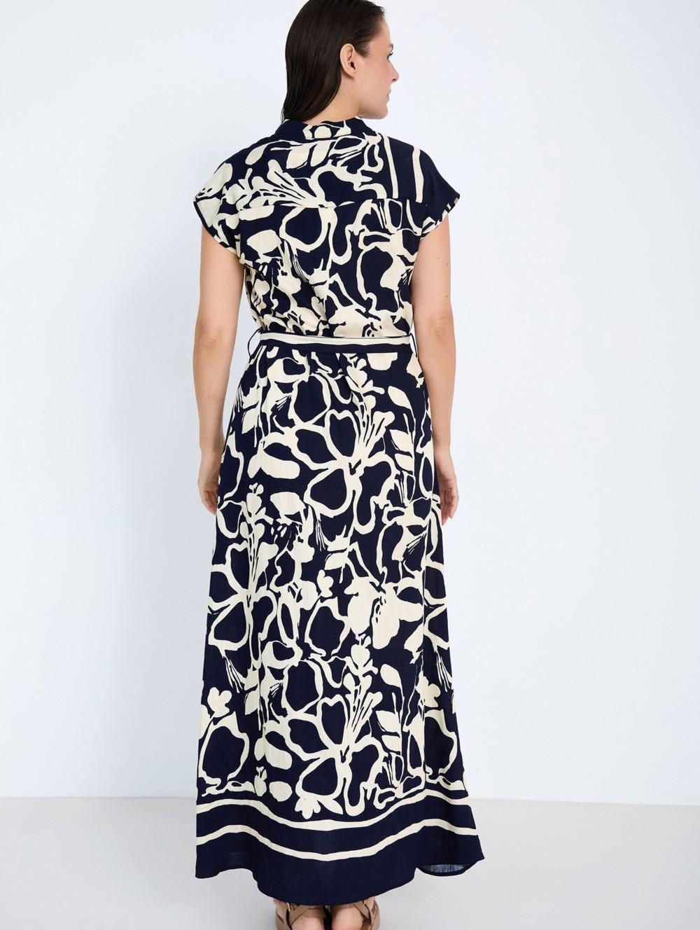 The Skatie Brand abstract print dress in navy is an elegant, flowing piece designed to bring effortless style to everyday and occasion dressing. With its full-length silhouette and expressive abstract floral print, the dress creates a refined look that feels both modern and feminine.