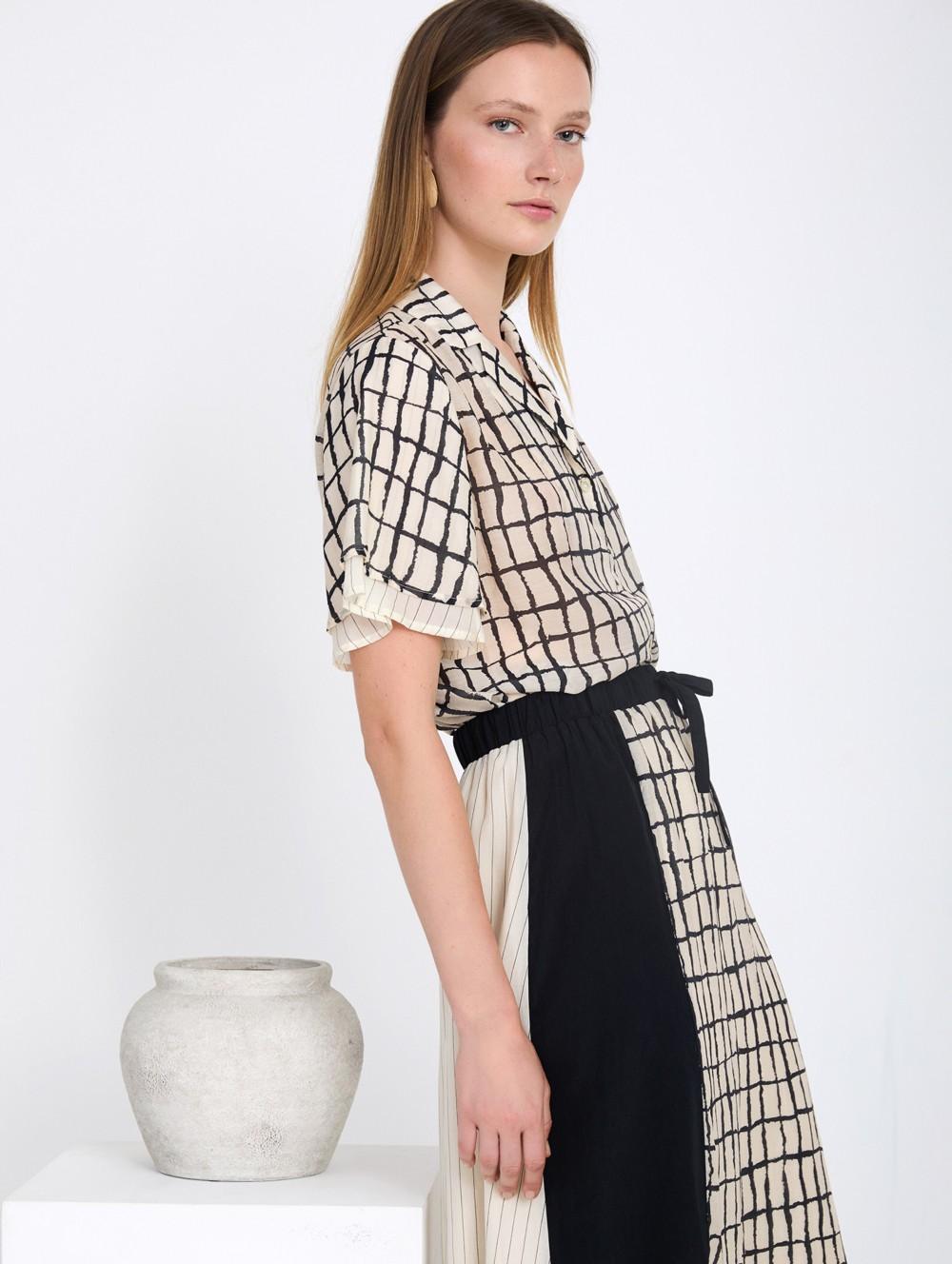 The Skatie Brand checkered printed shirt is a relaxed yet refined piece designed to bring effortless pattern and texture to everyday dressing. Featuring a classic plaid-inspired print and a flowing silhouette, the shirt offers a contemporary look that is both versatile and easy to style.